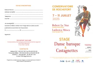 J’aurai le plaisir d’enseigner de nouveau au Conservatoire de Rochefort cette année aux côtés de ma très chère Ludovica Mosca qui enseignera les Castagnettes pour la danse baroque.